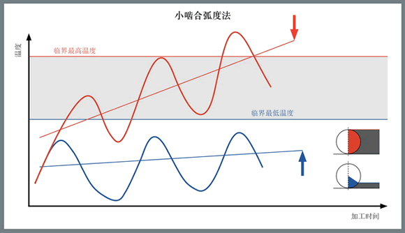 為銑削加工計(jì)算的補(bǔ)償因子指出了多種途徑來改變與刀具嚙合量有關(guān)的切削參數(shù),從而保持所需的加工溫度。如果溫度過低,則無法使刀具材料達(dá)到最大的韌性,同時(shí)還可能會(huì)形成積屑瘤(積屑瘤是導(dǎo)致切削刃斷裂或微崩的情況)。如果溫度過高,則會(huì)加快切削刃磨損或刀具變形。通過參數(shù)調(diào)整進(jìn)行補(bǔ)償可以平衡熱負(fù)荷與機(jī)械負(fù)荷,優(yōu)化刀具壽命和生產(chǎn)率。